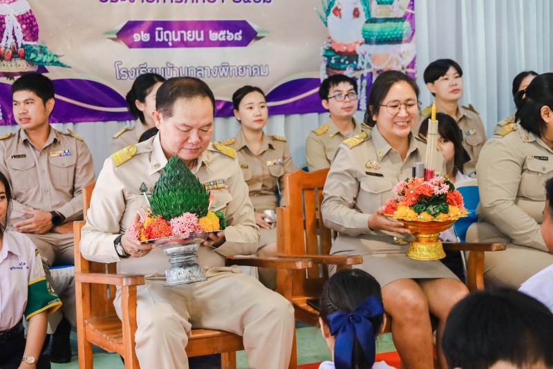 นางนวสิริลักษณ์ โพธิบุตร รองผู้อำนวยการโรงเรียนบ้านกลางพิทยาคม คณะครูโรงเรียนบ้านกลางพิทยาคม จัดกิจกรรมวันไหว้ครู ประจำปีการศึกษา 2568 ให้กับนักเรียนโรงเรียนบ้านกลางพิทยาคม เพื่อแสดงความกตัญญูกตเวที แสดงความพร้อมเป็นศิษย์ที่ดี ขอพรเสริมสิริมงคลในเรื่องการเรียน ส่งเสริมคุณธรรมจริยธรรมในสังคมและส่งเสริมความสัมพันธ์อันดีระหว่างครูและศิษย์ณ ลานเอนกประสงค์ อาคารปาริชาติ โรงเรียนบ้านกลางพิทยาคม อำเภอวังทอง จังหวัดพิษณุโลก |